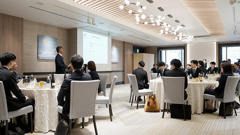 ギャラリー 内定式 入社式・内定式 【2025年度】4月3日(木) LIFORK大手町にて、入社式を行いました 【2025年度】1月26日(金) グループ会社が運営する『鎌倉 遊ヶ崎』にて、内定者パーティを行いました。 グループ会社が運営する『鎌倉 遊ヶ崎』にて、新卒・中途スタッフの入社式を行いました。創業者倉橋の挨拶、各部署の事業部内容紹介、新しい生活の第一歩を踏み出します。 社員旅行 希望スタッフが参加することができる社員旅行です。写真はパラオと沖縄です。 仕事風景 日々の業務の他にも、リアルやオンラインでのセミナーも開催しています。経験豊富なスタッフが多いからこそ、確実にステップアップできます。